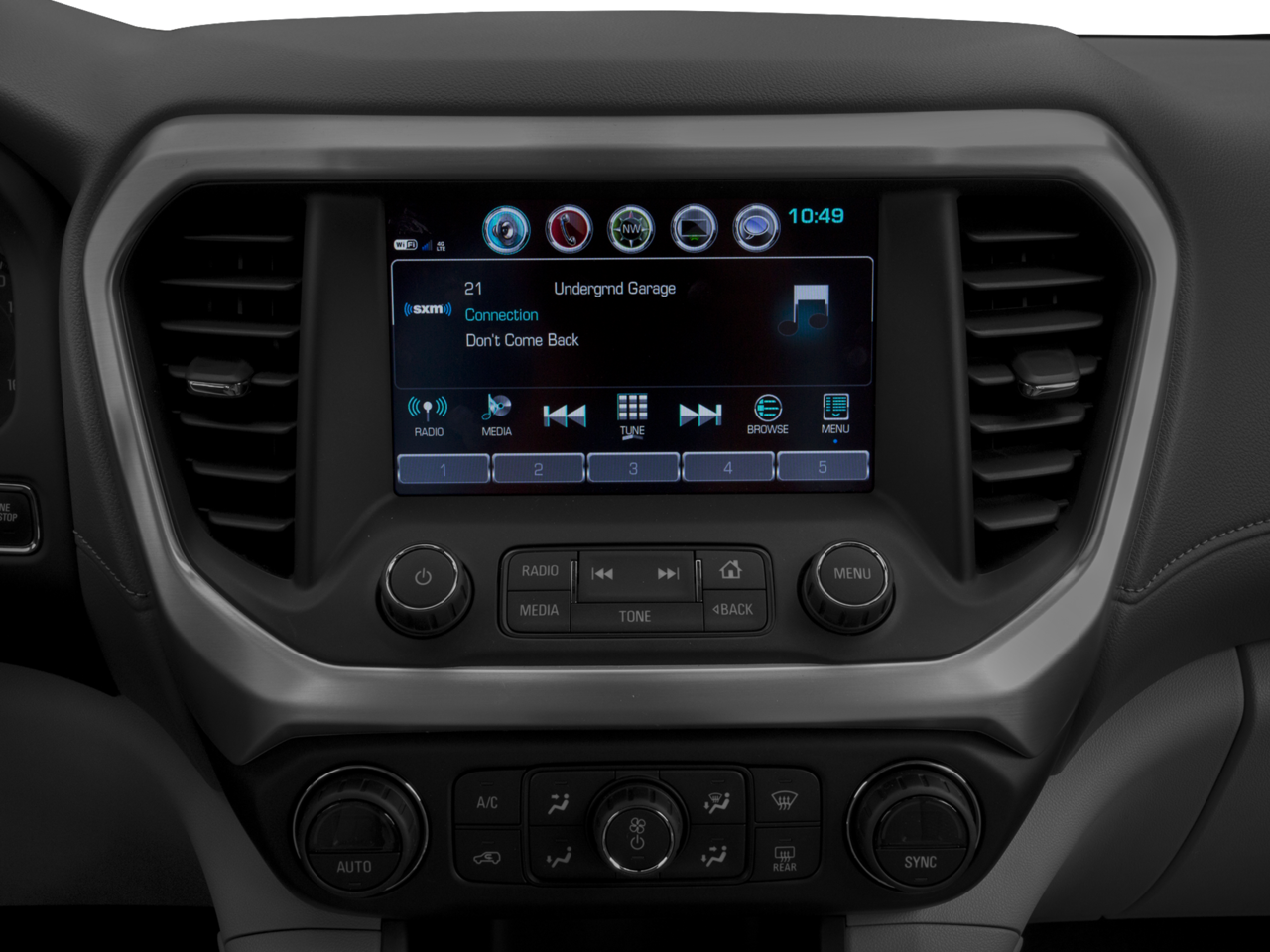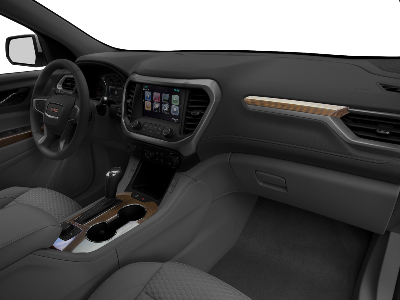 ENGINE, 3.6L V6, SIDI, DOHC with Variable Valve Timing (VVT) (310 hp [231.1 kW] @ 6600 rpm, 271 lb-ft of torque @ 5000 rpm [365.9 N-m]), AUDIO SYSTEM, 8 DIAGONAL COLOR TOUCH SCREEN WITH INTELLILINK, AM/FM/SIRIUSXM USB ports, auxiliary jack, Bluetooth® streaming audio for music and most phones, advanced phone integration featuring Apple CarPlay, Android Auto and voice-activated technology for radio and phone, DRIVER ALERT PACKAGE I includes (UKC) Side Blind Zone Alert with Lane Change Alert (UFG) Rear Cross Traffic and (UD7) Rear Park Assist, TRANSMISSION, 6-SPEED AUTOMATIC, AUDIO SYSTEM FEATURE, BOSE PREMIUM 8-SPEAKER SYSTEM with sub-woofer. GMC SLE with Quicksilver Metallic exterior and Jet Black interior features a V6 Cylinder Engine with 310 HP at 6600 RPM*.