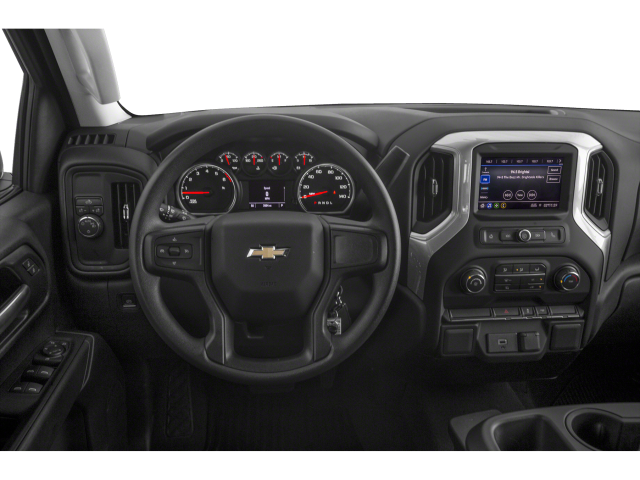 CHEVYTEC SPRAY-ON BEDLINER, BLACK WITH CHEVROLET LOGO (does not include spray-on liner on tailgate due to Black composite inner panel), AUTO-LOCKING REAR DIFFERENTIAL, SEAT ADJUSTER, DRIVER 10-WAY POWER INCLUDING LUMBAR, AUDIO SYSTEM, CHEVROLET INFOTAINMENT 3 SYSTEM 7 diagonal color touchscreen, AM/FM stereo. Additional features for compatible phones include: Bluetooth® audio streaming for 2 active devices, voice command pass-through to phone, wired Apple CarPlay and Android Auto capable. (STD), ENGINE, 2.7L TURBO (310 hp [231 kW] @ 5600 rpm, 348 lb-ft of torque [471 Nm] @ 1500 rpm) (STD), TRANSMISSION, 8-SPEED AUTOMATIC, ELECTRONICALLY CONTROLLED with overdrive and tow/haul mode. Includes Cruise Grade Braking and Powertrain Grade Braking (STD). Chevrolet Custom with Silver Ice Metallic exterior and Jet Black interior features a 4 Cylinder Engine with 310 HP at 5600 RPM*.