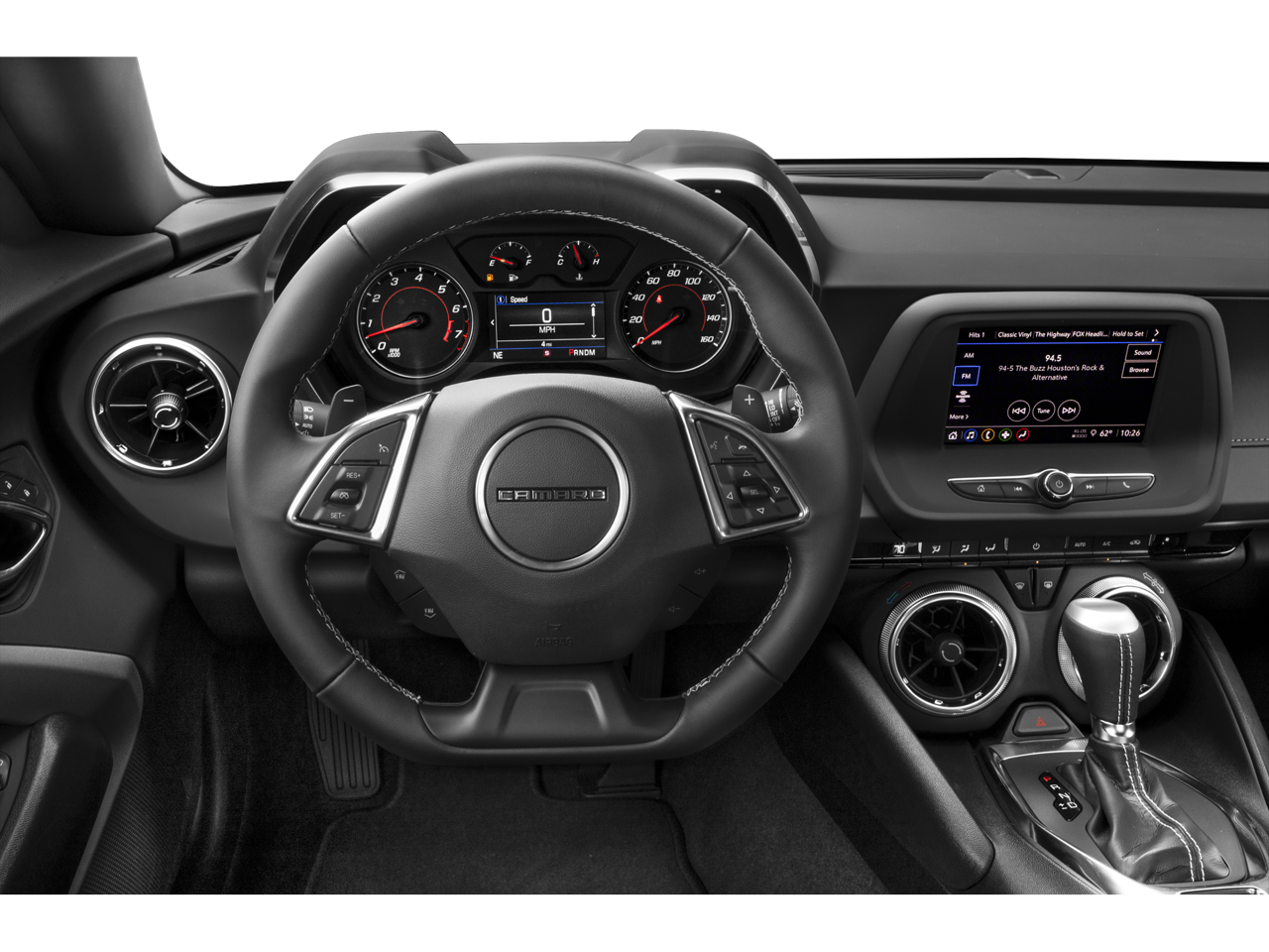 TRANSMISSION, 10-SPEED AUTOMATIC includes transmission oil cooler and (BTV) remote vehicle starter system, WHEELS, 20 (50.8 CM) 5-SPLIT SPOKE BLACK FORGED ALUMINUM, AUDIO SYSTEM, CHEVROLET INFOTAINMENT 3 SYSTEM, 7 DIAGONAL COLOR TOUCHSCREEN, AM/FM STEREO. Additional features for compatible phones include: Bluetooth® audio streaming for 2 active devices, voice command pass-through to phone, Apple CarPlay and Android Auto capable. (STD), ENGINE, 6.2L (376 CI) V8 DI, VVT (455 hp [339.3 kW] @ 6000 rpm, 455 lb-ft of torque [614.3 N-m] @ 4400 rpm) (STD). Chevrolet LT1 with Riverside Blue Metallic exterior and Jet Black interior features a 8 Cylinder Engine with 455 HP at 6000 RPM*.